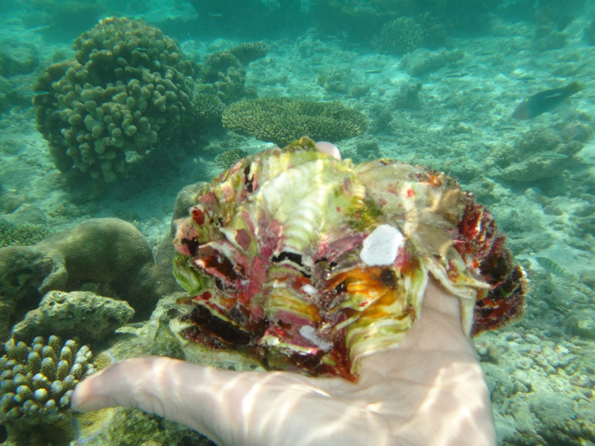 У островов нашего атолла прибрежные воды богаты планктоном, которым питается эти мирные гиганты. В длину они могут достигать и 20 м, но они пугливы и от прикосновения могут уйти на глубину.